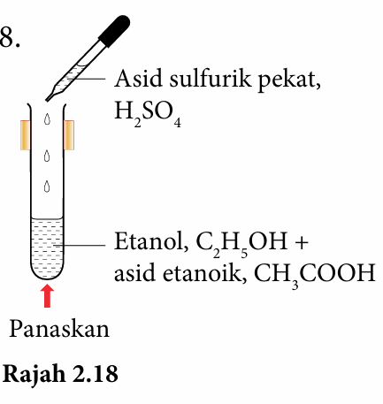 5. Tulis persamaan bagi tidak balas antara asid etanoik, CH3COOH dan etanol, C2H5OH.
