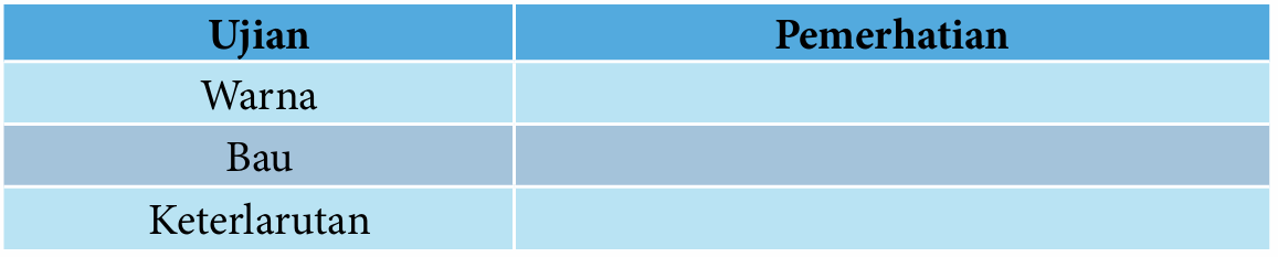 6. Rekodkan bau, warna dan keterlarutan hasil.