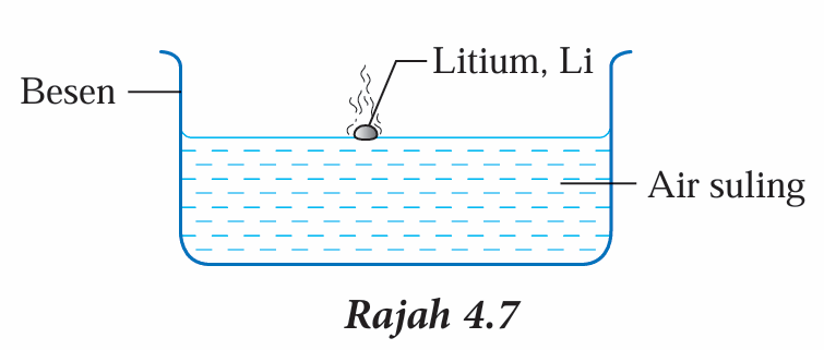 (A) Tindak balas unsur Kumpulan 1 dengan air (Demonstrasi guru)
