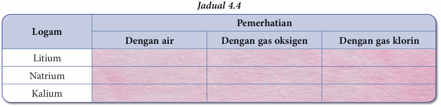 Eksperimen 4.1 (Buku Teks) – Kimia Tingkatan 4 (KSSM) Bab 4 (Jadual Berkala Unsur)