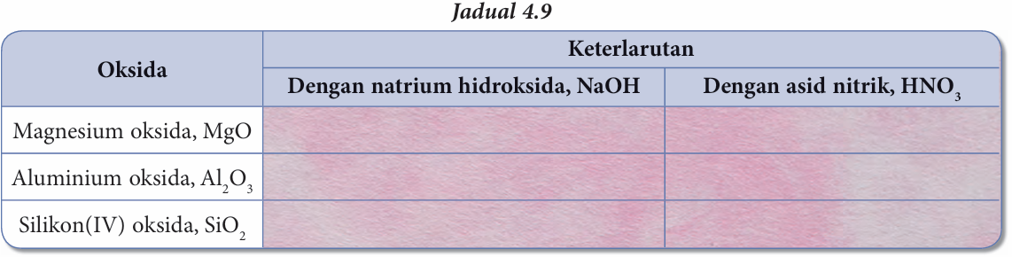 Tujuan: Mengkaji perubahan sifat kimia oksida unsur apabila merentasi Kala 3.